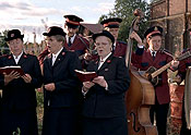 Salvation Army choir begins to play non-diegetically while