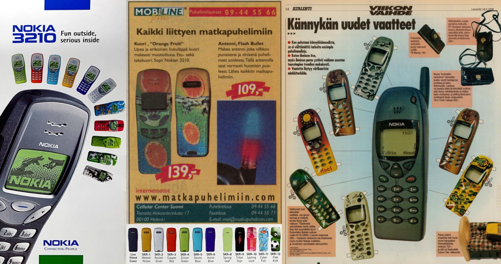 The main bodies of research material for this article are newspaper and magazine articles, advertisements and the diverse materials found in the Nokia Design Archive. Most of the articles and advertisements were selected from the Finnish Iltalehti tabloid, as it was in wide circulation and represents what the general public saw at the time, not just special audiences. The search started with phone model names and the personalization options we could initially think of, expanded as we discovered more, and finished with 74 items when no new content appeared. As personalization is linked to fashion and trends, some additional searches to Vogue and Vanity Fair provided extra data on how phone companies tried to reach such audiences. The online Mobile Phone Museum (n.d.) was used for finding technical specifications and publication years of phone models.