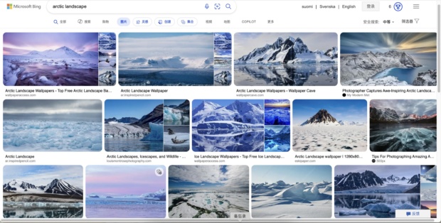 Earlier this week, as I was reflecting on the original motivation behind my research, I tried to put in the keyword “Arctic Landscape” into three of today’s most popular search engines.