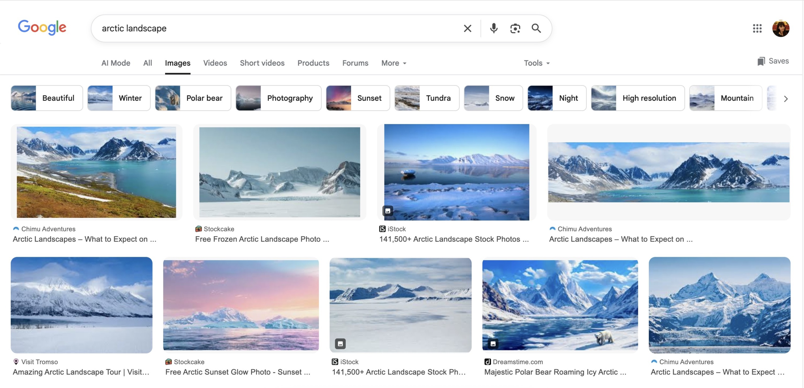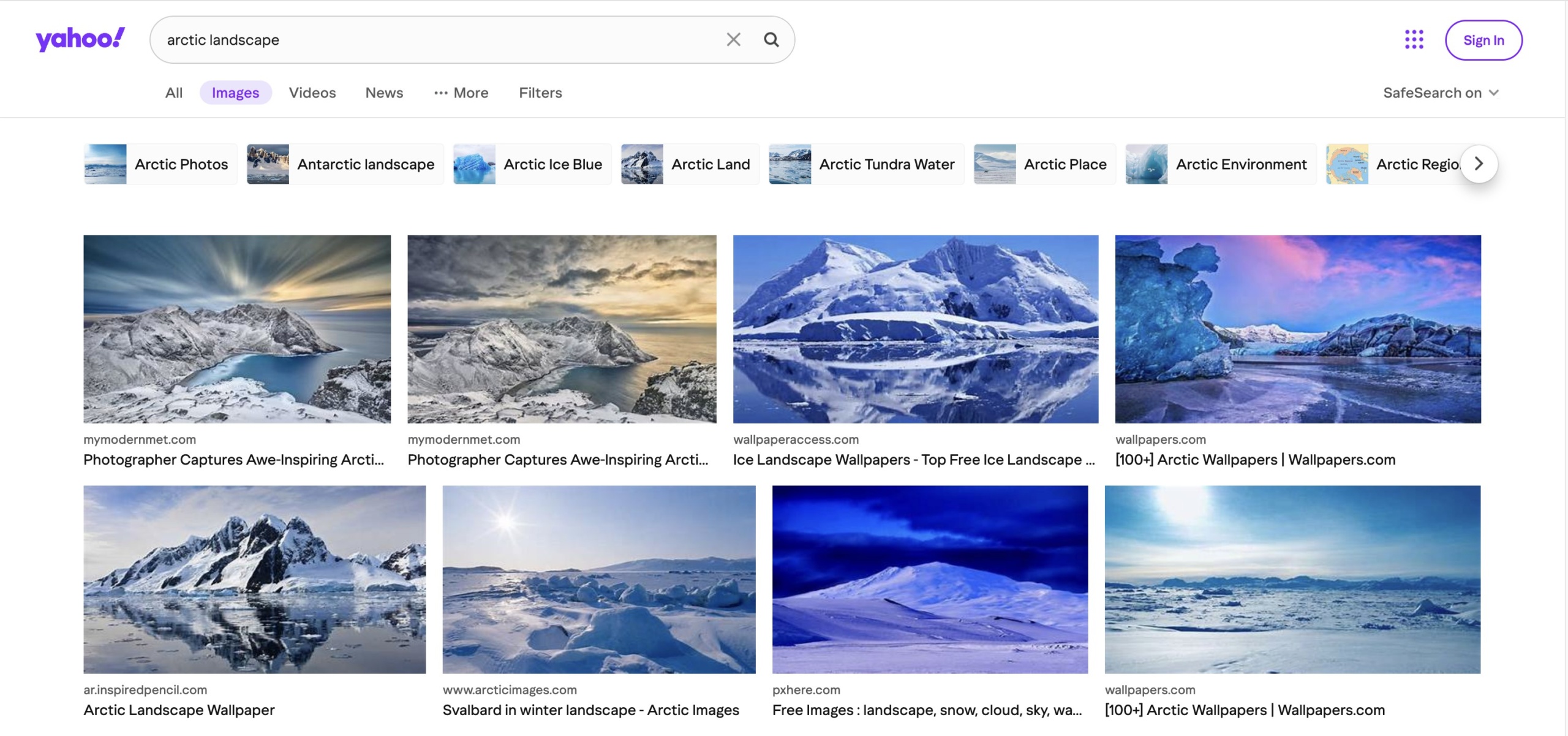 Earlier this week, as I was reflecting on the original motivation behind my research, I tried to put in the keyword “Arctic Landscape” into three of today’s most popular search engines.